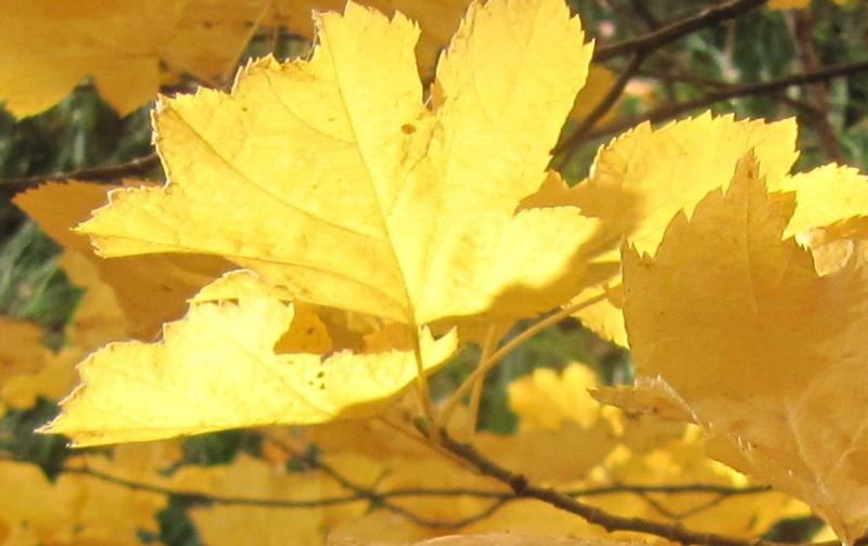 Ich tippe auch eher auf Sorbus torminalis als als auf einen Ahorn. Wenn man sich das linke obere Viertel des Fotos genauer anschaut, scheinen Blattform und Baubstellung dafür zu sprechen.Die gelbe Herbstfärbung mag auf einen schattigen Stand zurückzuführen sein.