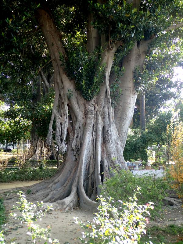 Sevilla verfügt über ausgedehnte Park-Areale.Hier der Murillo-Park mit seinen riesigen Gummibäumen