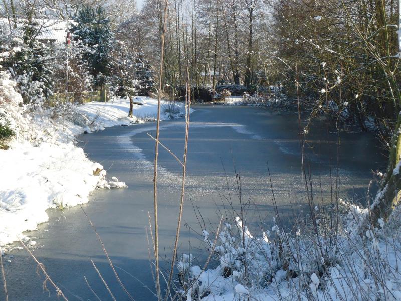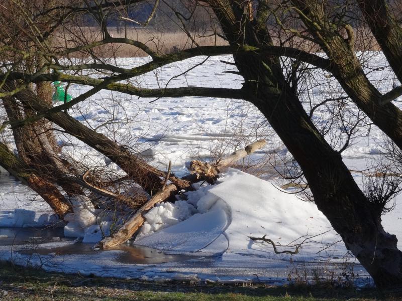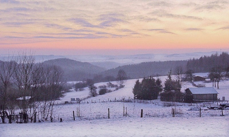 Hier ist heute der erste Wintertag mit Eis und Sonne, grandioser Sonnenaufgang, Pastellkitsch am Himmel, Raureif auf den Bäumen, leider totale Überforderung für die Kamera. Vom Raureif sieht man nix und der Himmel war in Wirklichkeit zarter gefärbt.