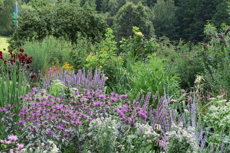 nun, die Folie habe ich genommen, weil ich aus anderen Gartenbereichen bereits wusste, wie effektiv das geht, und tatsächlich gab es von Anfang an in diesem Areal auch etwas Giersch. Die Folie liegt seit letztem Frühjahr bereits an anderer Stelle im Garten, um dort ihre stille Arbeit bis ins Frühjahr 2017 zu verrichten...ist auch bedeutend rückenschonender... ;)gepflanzt hauptsächlich Agastache ´Blue Fortune`, Salvia farinacea, Parthenium, Echinacea pallida, Echinacea simulata, Amsonia ssp., Monarda, Persicaria, Anaphalis, Perovskia u.v.a.Eindrucksvolle Verwandlung. Sehr beeindruckt bin ich auch von Deiner Geduld. Was ich nicht verstehe, ist, warum Du den Rasen nicht einfach umgegraben hast? (So groß ist die Fläche ja nun auch nicht - Normalsterbliche hätten da ein paar Wochenendschichten für gebraucht, Hausgeist hätte das wohl zwischen Kaffeetrinken und Abendbrot erledigt ;-) Oder hatten sich seit der Aufschüttung schon so viele Wurzelunkräuter in dem Rasen eingestellt?Auf jeden Fall ist die Pflanzung sehr schön geworden. Was hast Du denn da alles versenkt? Erkannt habe ich Echinacea pallida, Agastache rupestris (?), Agastache 'Black Adder' (?), Salvia nemorosa (Sorte?).Klaus