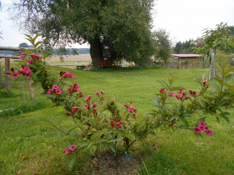 Ringelchen, wie hoch sollen/ dürfen eure Wunsch-Gehölze denn werden? Nach oben hin sind keine Grenzen. Nur nicht zu niedrig. Die Gehölze sollten schon wenigsten 2 Meter schaffen.Und vielleicht könntest du noch was sagen zu den allgemeinen Bedingungen bei euch. (Dann lässt sich der eine oder andere Vorschlag vielleicht schon ausschließen.) Gerne. - Boden: fett oder karg, lehmig, sandig, humos oder sonstwas, kalkhaltig oder eher sauer? Wir haben besten Boden. Sprich lehmig, fett. Den Ph-Wert unter der großen Weide habe ich erst vor wenigen Wochen gemessen. Schwach sauer 6,0.- Feuchtigkeit: Wie viel regnet's bei euch so Pi mal Daumen? Wie steht's in der Anwachsphase und später in Dürrezeiten mit Bewässerungsmöglichkeiten?Lichtverhältnisse sind nach deinen Fotos ja klar: offen und sonnig - Sträucher, die es schattig bzw. kühl lieben, könnt ihr nicht gebrauchen. Wichtig zu erwähnen ist, dass der Boden dort unten nie zu trocken ist. Unmittelbar hinter dem Zaun (Richtung Wald) befindet sich ein Graben. Dort ist auch der tiefste Punkt des Grundstücks. Regen haben wir eher wenig. Wie wenig, kann ich genau jetzt nicht sagen. Halesia carolina ist zauberhaft. Und eben drum zu schade für einen Platz mitten in einer Hecke. Aber als Solitär zum seitlichen Hecken-Abschluss könnte ich mir solch ein nobles Gewächs sehr gut vorstellen. Zumal es höher wird als die üblichen Heckenpflanzen. Den durften wir im letzten Jahr blühend und ausgewachsen in voller Schönheit bewundern. Ein Märchen!