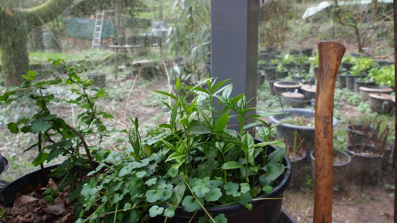 Die Sämlinge sehen gut aus. Noch voll belaubt. Same Dezember 2015. Ich werde sie dieses Jahr wohl mal vereinzeln.