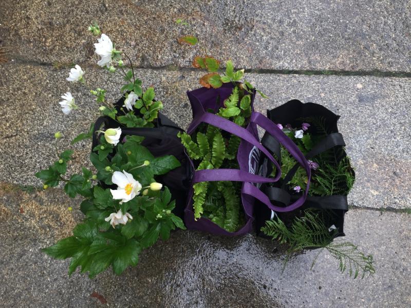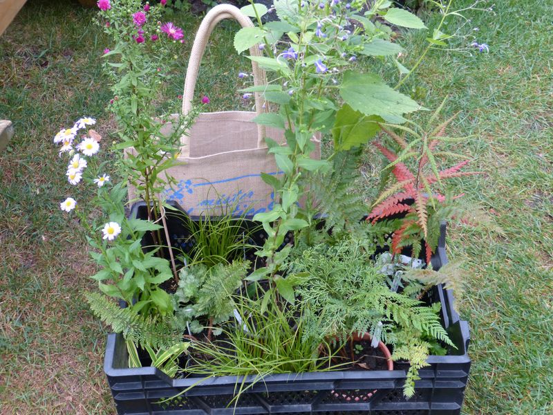 bevor ich wieder trocken ins warme bett gehe: zwei verschiedene weißblühende herbstanemonen (1 x 'whirlwind', 2 x 'honorine jobert', zwei töpfe mit versehentlich je zwei verschiedenen cyclamen hederifolium (1x silberblatt, 1 x speziell laubschön), 3 verschiedene hirschzungen (eigentlich 5, aber zwei gehen an einen freund), 2 verschiedene schildfarne, 1 x epimedium, 1 x kerria japonica albescens, 1 x ein extrem überteuertes eranthis-einzelstück als trotzdem-trost für das scheißwetter. :P ;)