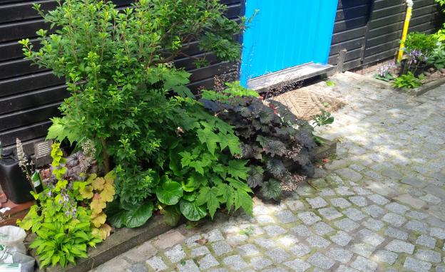 Die Kirengeshoma habe ich dieses Frühjahr gepflanzt. Bis jetzt ist sie nicht über 30 cm Höhe hinausgekommen und die Blüten liegen, wenn man sie nicht stützt, auf dem Boden. :P Hoffe nächstes Jahr geht da etwas mehr.