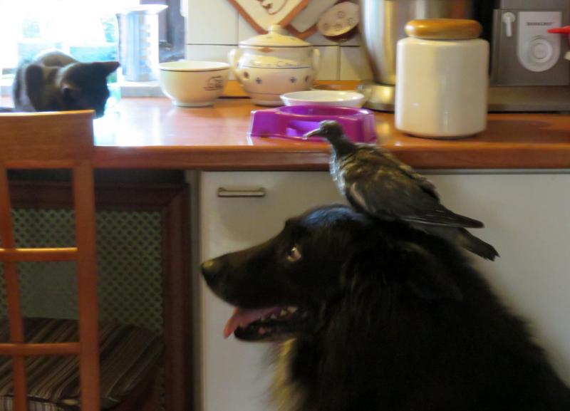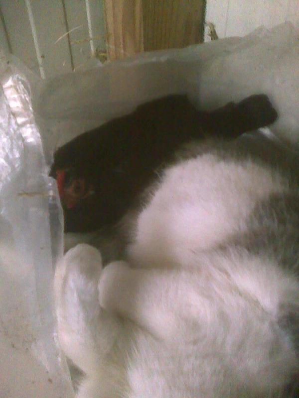 Wohnt immer noch bei den Hühnern, wie man auch, zwar nicht gut, aber doch auf dem angefügten Bild sehen kann. Und mit dem Hund versteht sie sich auch wunderbar, aber nur am Hühnerhaus, ansonsten flüchtet sie meistens.