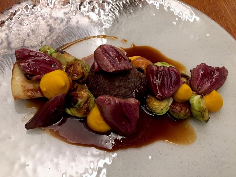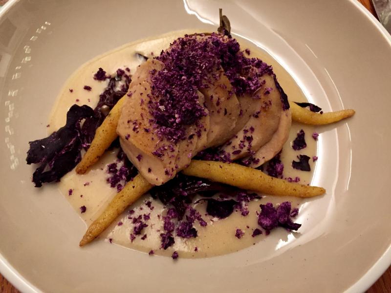 der rinderhoden war neu für mich, ich musste das probieren, auf fermentiertem gebratenem rotkohl, garniert mit getrocknetem rotkohl, mit schupfnudeln – es war wirklich schön und schmackhaft, aber ich würde doch hirn, kutteln oder milz vorziehen. ;)