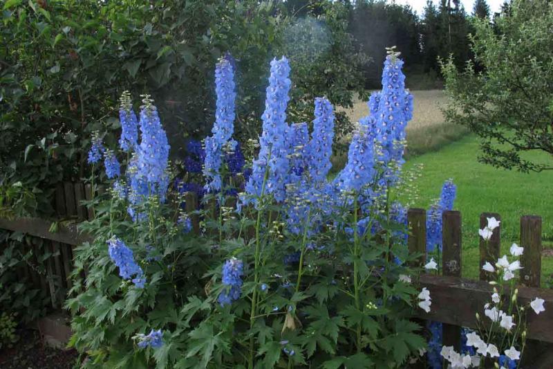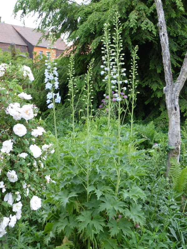 Einige Jahre halten sich die Rittersporne hier in der Regel. In einem einzigen Beet halten sie sich jedoch nicht nur, sondern wachsen auch noch üppig - sowohl Foerster-Sorten als auch ein schöner Sämling von tiarello.