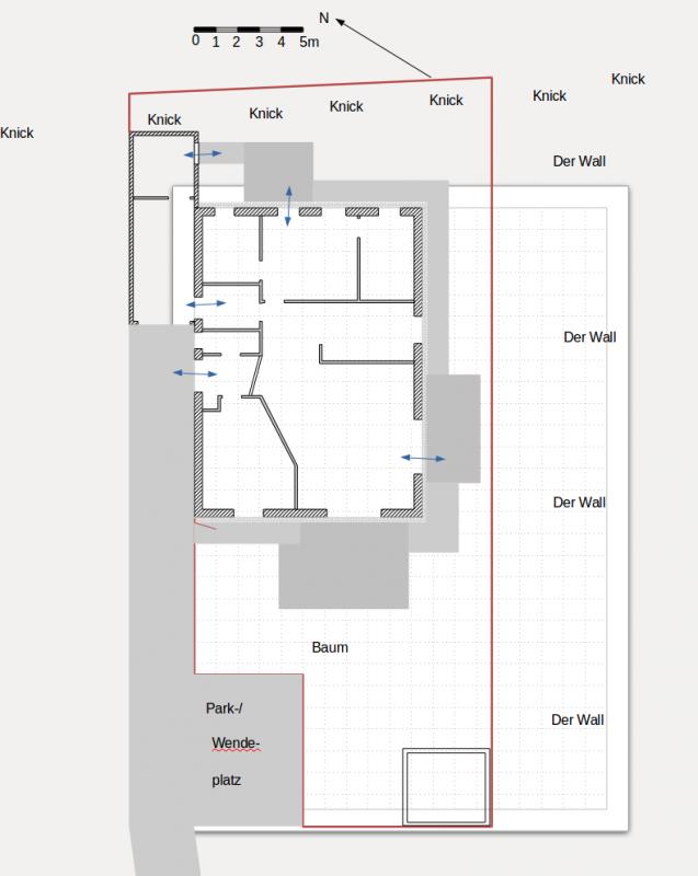 DerSchuppen muss leider sein, kein Keller und kein Dachboden. Und hinterm Haus ist es durch den Knick eh schon so beengt. Den Knick darf ich auch nicht wegnehmen ... oder für jeden entfernten 2 m neuen anlegen.