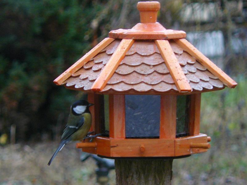 Hier hat es auch eine Weile gedauert, bis die neue Futterstelle angenommen wurde. Da ich im Winter nicht in den Garten hochkomme (Hanglage) habe ich dieses Jahr das Haus in der Einfahrt zwischen den Häusern aufgestellt.