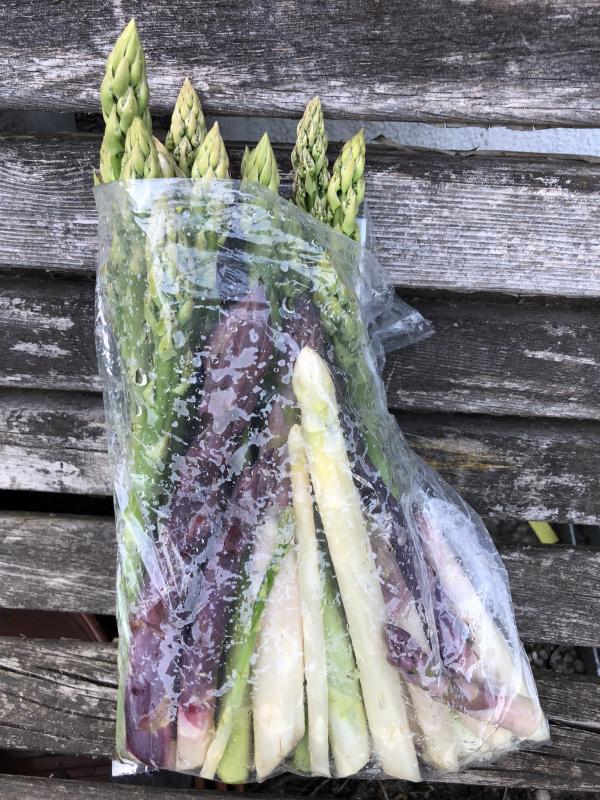 hier gab es zum feierabend superfrisch gestochenen gartenspargel, den hier: