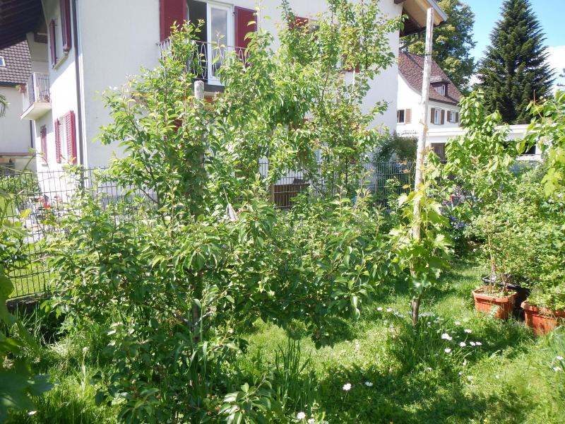 Ja, das ist die Dessertnaja - im gleichen Standjahr an diesem Platz (ist aber ansonsten 2 Jahre älter). Die ist jetzt knapp 2 m hoch (OK, der eine Zweig geht etwas höher) - da habe ich die ganzen Themen nicht. Die schneide ich - dann gibts Verzweigungen und Blüten und die Sache ist geritzt. Die hatte wegen des Frostes letztes Jahr kaum Früchte dran, das Wachstum habe ich wie bei der Williams durch Sommerschnitt begrenzt.