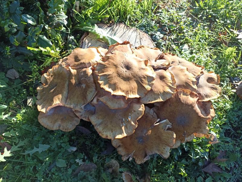 Er kann dem Baum nicht mehr gefährlich werden, denn der ist schon ab. ;) Ich habe auch keine Ahnung, welcher Baum es war, denn es existiert nur noch der Stumpf und der steht auf dem hiesigen Friedhof. Drumherum ist mir gestern eine hübsche große Pilzansammlung aufgefallen. :D Ich wollte eigentlich nur das Foto zeigen, habe aber auch nichts dagegen, wenn mir jemand sagen könnte, um welchen Pilz sich es handelt. ;)