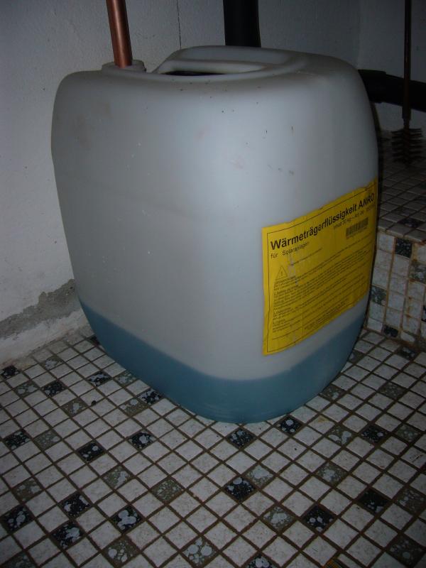 Zu Kanistern: Solaranlagen benötigen Frostschutzmittel in größeren Mengen, das wird's dann in größeren Kanistern geben. Vielleicht hat der Heizungsbauer Deines Vertrauens etwas in passender Größe für Dich übrig?