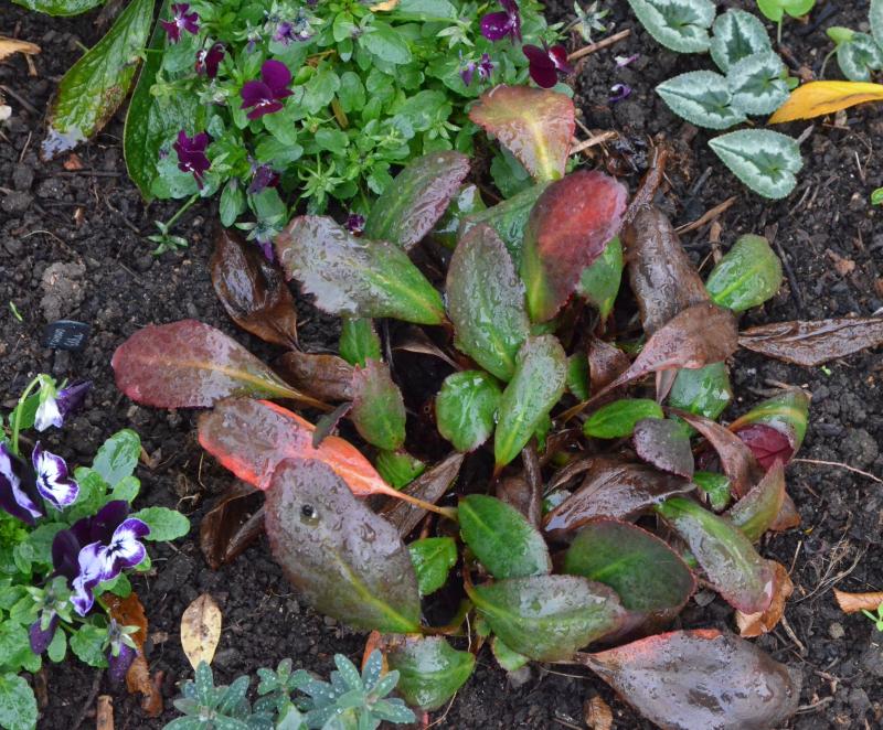 Ich könnte mir in dem Beet übrigens auch kleinblättrigere Bergenien gut vorstellen, z.B. 'Wintermärchen' oder etwas aus der Dragonfly-Serie. Die haben im Winter schön buntes Laub.