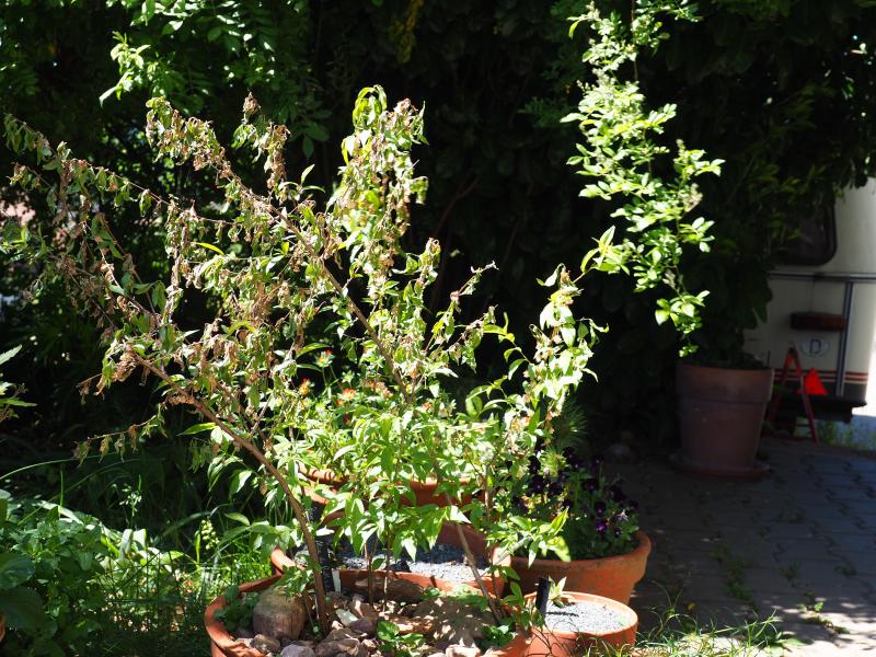 so, es ist wie beim Phönix, nach dem Höhepunkt kommt der Absturz. In diesem Fall die Monilia-Spitzendürre. Das sah so aus.
