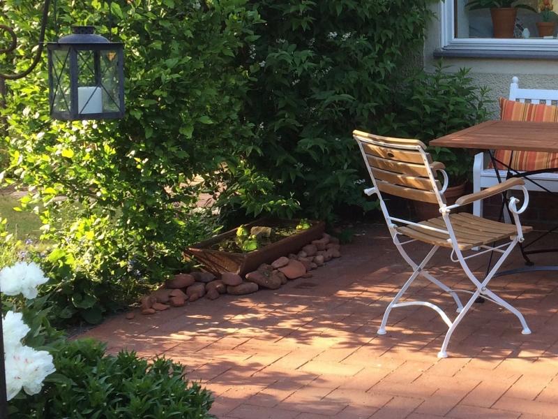 (Ich habe leider aktuell kein Foto von den Pfeilkräutern. Auf dem angehängten Bild hocken noch ein paar grüne Glasfrösche drin, aber die Einbindung auf der Terrasse kann ganz gut gesehen werden.)