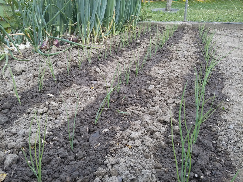 In der Zwischenzeit sind auch die Frühlingszwiebeln für die Überwinterung gesäht. Sorte Tonda Musona.