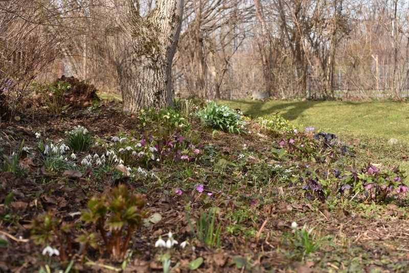 Hier sind die Helleboren endlich in Vollblüte :).