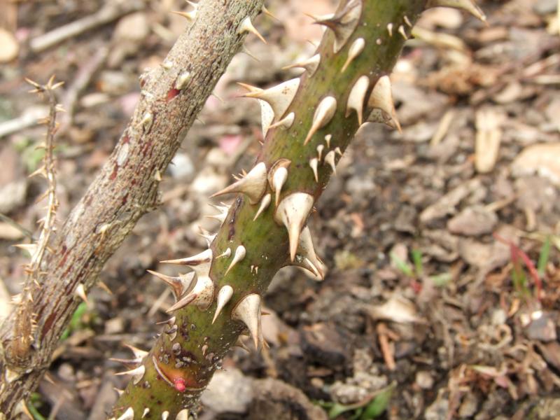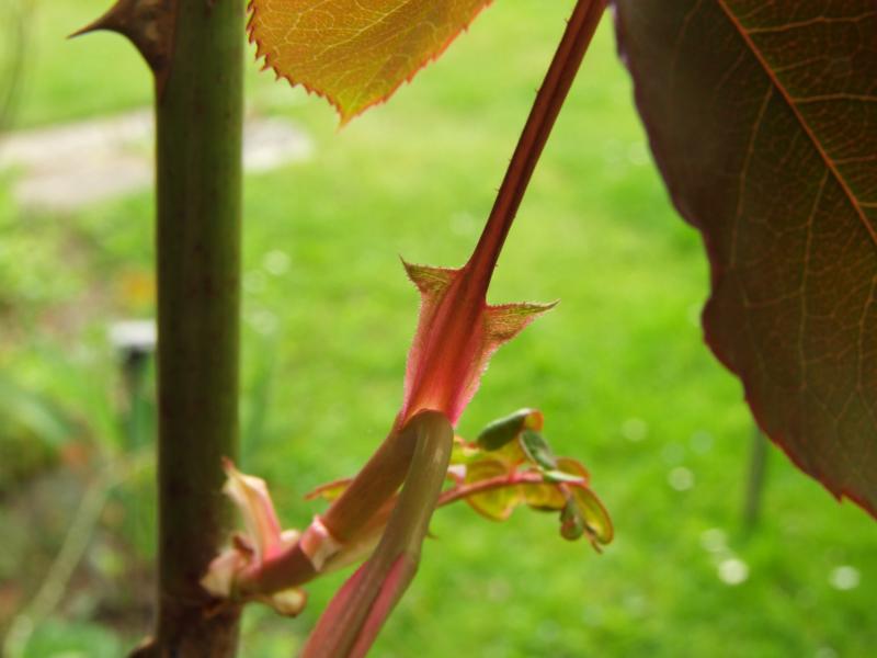 Jetzt zu Papa Meilland.Da kann ich nur Stacheln bieten, weil ich sie noch einmal wegen Frostschäden zurückschneiden musste.