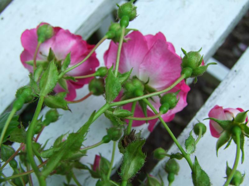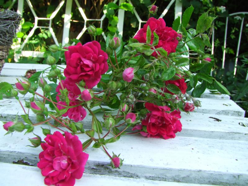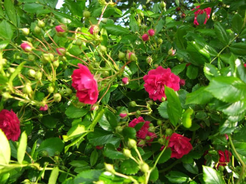 Ich habe da in der Ramblerhecke noch mehr kleinblumige Rote.Aber da komm ich im Augenblick nicht an die Schilder,wegen Dschungelsituation ::) :P