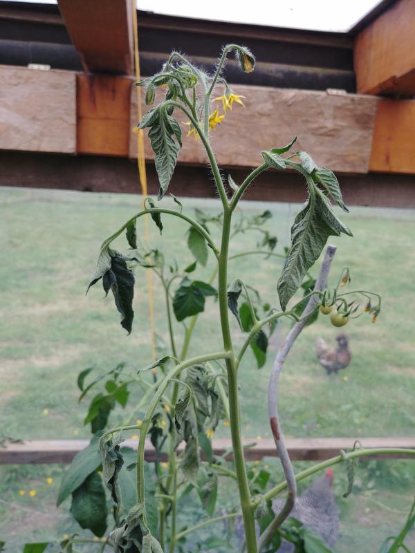 Tja Finii, nun habe ich die erste meiner Freilandtomaten auch roden müssen, denn die sieht genau so aus wie deine. Am Stamm habe ich braune Flecken entdeckt. Ich tippe auf Pilz, welcher auch immer. Das ist aber auch wirklich kein Wetter für Freilandtomaten, bei uns ein kalter, nasser Sommer, nachts unter 10 Grad und in der vergangenen Woche 13 Grad tagsüber. Die Tomaten daneben scheinen auch bald hin zu sein, die im Gewächshaus und unter Dach sehen noch gut aus. Freilandgurken muss ich roden, noch bevor ich die erste ernten konnte. Alle verpilzt.