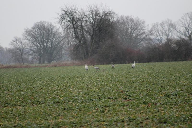 Vergangenen Sonnabend auf einem Feld in der Nähe Kraniche auf der Nahrungsaufnahme.