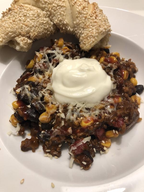 Und gestern Chili con carne mit Simit (türkische Sesamkringel)