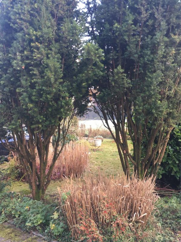 Vielleicht kann man ja aus symbolischen Gründen auch auf Langlebigkeit setzen. Zum Beispiel Eibe oder auch eine Elsbeere. Die werden beide nicht zu groß und müssen auch nicht später zurückgeschnitten oder entfernt werden.