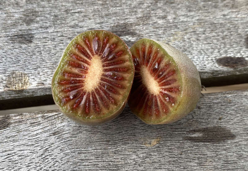 Danke für die Antwort, dann hoffe ich mal auf Herbst. Rote Minikiwis habe ich schon, mittlerweile sehr große Pflanzen im 4. Standjahr, die noch nicht getragen haben. Red Jumbo und Ken's Red.