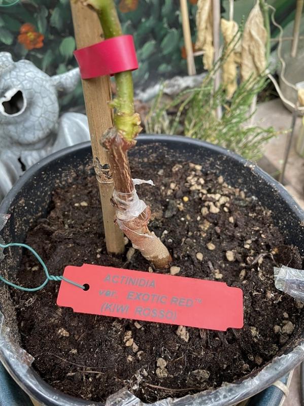 Weil bei meiner roten Kiwi Exotic-Red die Wurzeln verfault sind, habe ich jetzt neue bestellt. Diese sind jetzt auf einer Unterlage veredelt. Ich hoffe das wird jetzt was :).