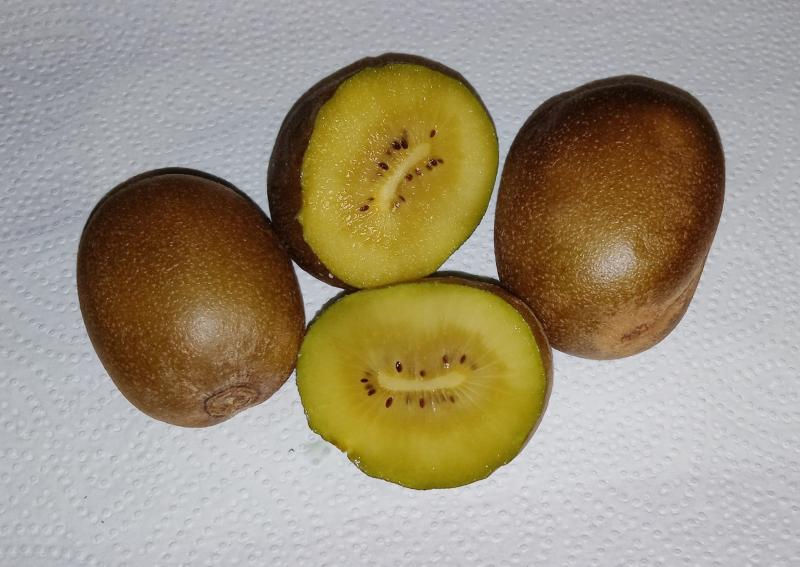 Irgendwo hatte ich schon ein Foto der aufgeschnittenen Gelben gezeigt. Ein besonderes Aroma konnte ich nicht feststellen. Halt normal Kiwi, vielleicht etwas weniger Säure als die Grünen. Aber wenn man selbst erntet, ist sie natürlich auf den Punkt reif und nicht unreif gepflückt.