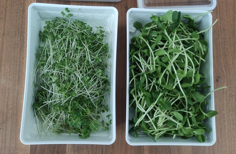 Ich habe heute Microgreens von Brokkoli und Sonnenblumen geerntet.
