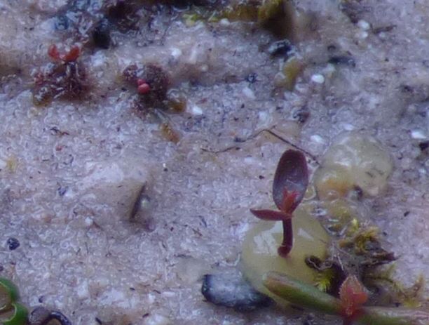 Die Kulturblaubeeren haben wohl endlich Fahrt aufgenommen. Die Drosera rotundifolia treiben auch aus ihren winzigen Winterknospen aus.