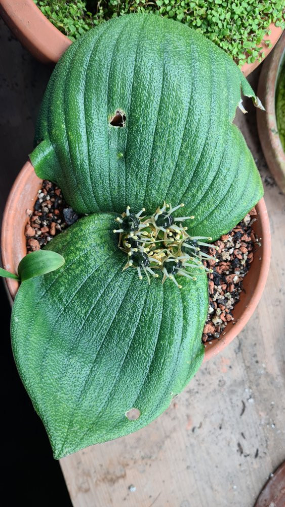 Nun auch bei mir erstmalig in Blüte: Massonia pustulata.