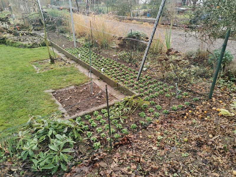 Ich hatte erst im November gepflanzt, den allerletzten Satz den man so machen kann in der Praxis, auf ein Beet wo vorher Zucchini drauf stand und Zucchini dünge ich so, das nach der Ernte fast kein Stickstoff übrig bleibt, der ins Grundwasser ausgewaschen werden könnte über Winter. Deshalb hat sich das auf dem Stickstoffarmen Beet über Winter mit den verschiedenen Düngermengen angeboten.