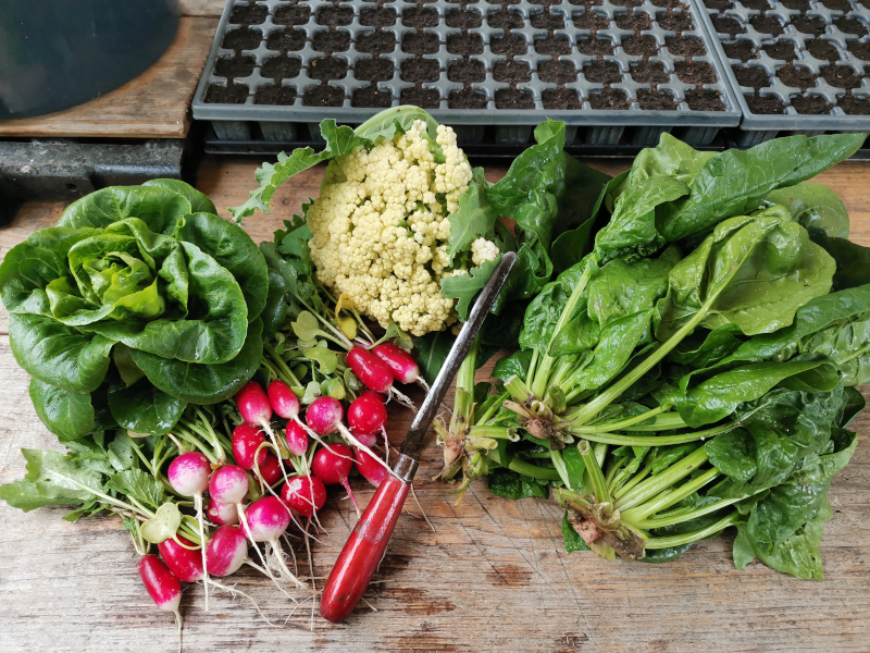 Blumenkohl, Pflücksalat und Radischen. :D