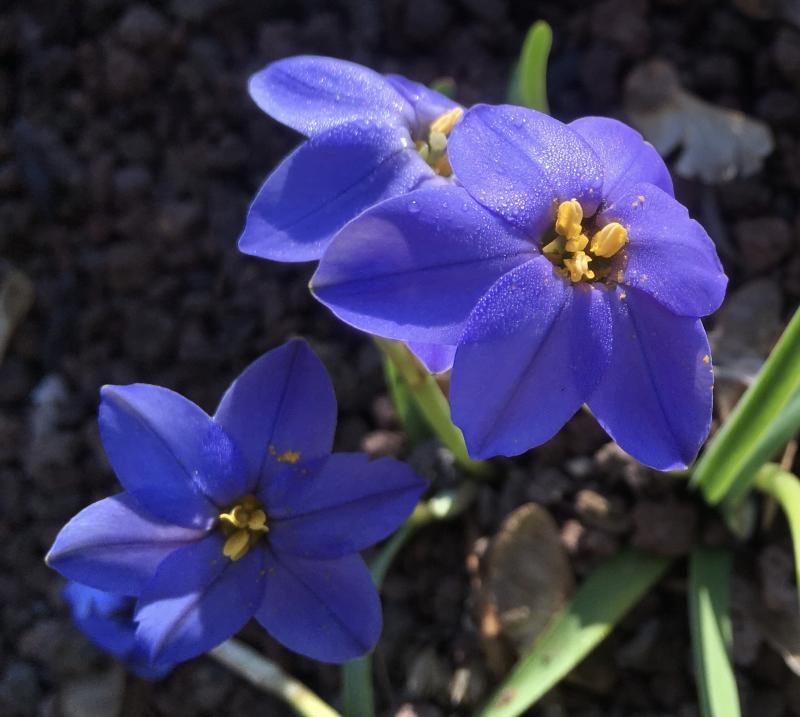 Dieses Ipheion, also das helle, blüht hier auch in verschiedenen Gruppen. Es stammt aus dem Garten meiner Mutter, die es wiederum von einer Nachbarin aus dem Nachbarhaus hatte.