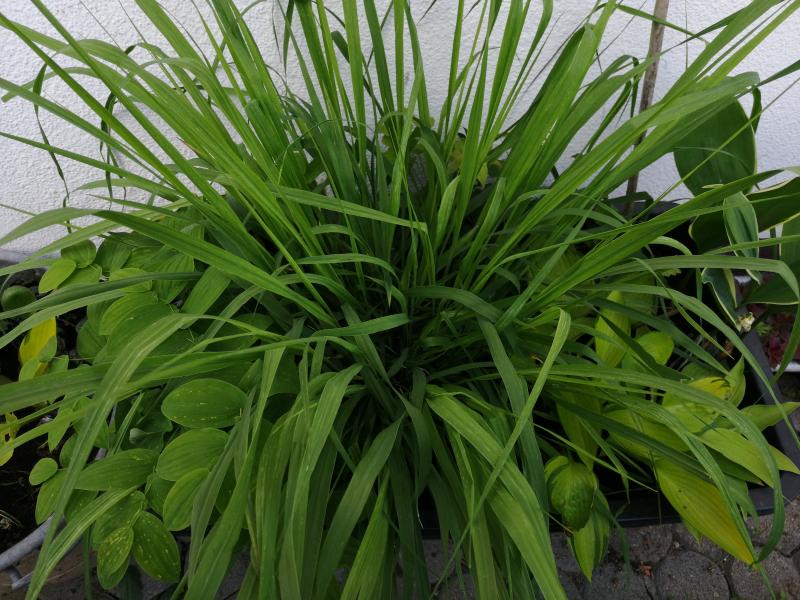 Ein Mörtelkübel, der aber Löcher hat gefällt mir momentan noch ganz gut, obwohl die Molinia arundinacea schon etwas den Rahmen sprengt und ich sie gegen eine kleinere Variante austauschen sollte.
