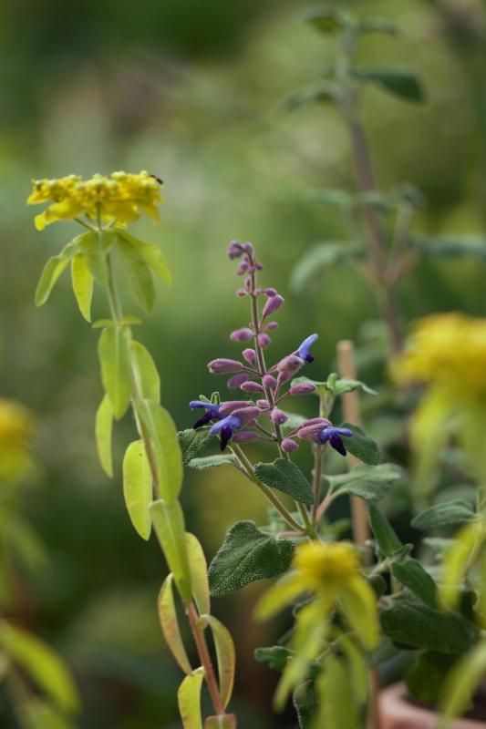 Hier beginnen manche Salbeien (was die Schnecken übrig gelassen haben) zu blühen.