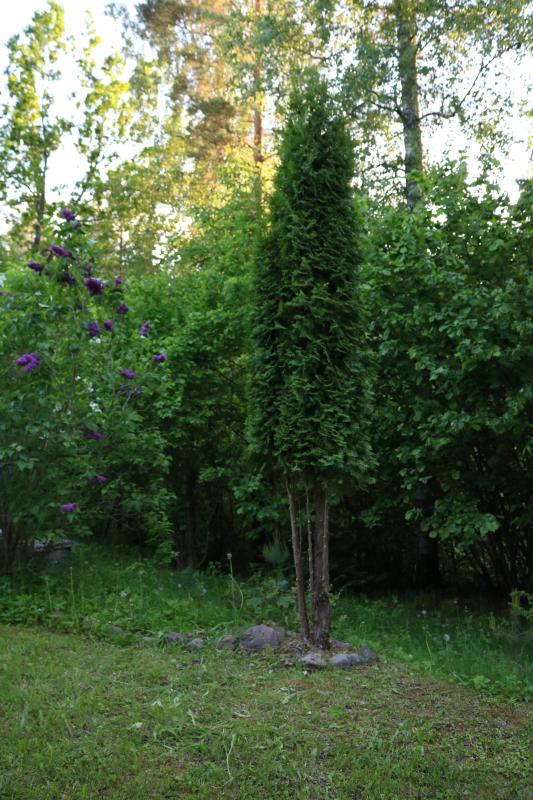 Ich bin selbst eigentlich kein Riesenfan von Thujen. Hierzulande sind sie auch sehr überrepräsentiert, gerade in Neubaugebieten, wo die Gärten oft nur aus Rasen und Thujenhecken bestehen... Allerdings muss ich gestehen, dass wir selbst auch letzten Herbst eine Thujenhecke gepflanzt haben (bitte nicht steinigen). Wenn man eine immergrüne Hecke will, die relativ schnell wächst und auch relativ pflegeleicht und widerstandsfähig ist, dabei aber nicht zu hoch wird und kein Vermögen kostet, hat man hier eigentlich nur wenige gute Alternativen. Sowas wie Kirschlorbeer, was man ja in Deutschland überall findet, übersteht unsere Winter einfach nicht problemlos. Unsere Thujenhecke steht aber nur an einer Seite des Grundstücks, wo sie für uns die einfachste Lösung war und sticht gar nicht heraus, da vom Garten aus gesehen so viele andere Bäume und Büsche davor stehen.