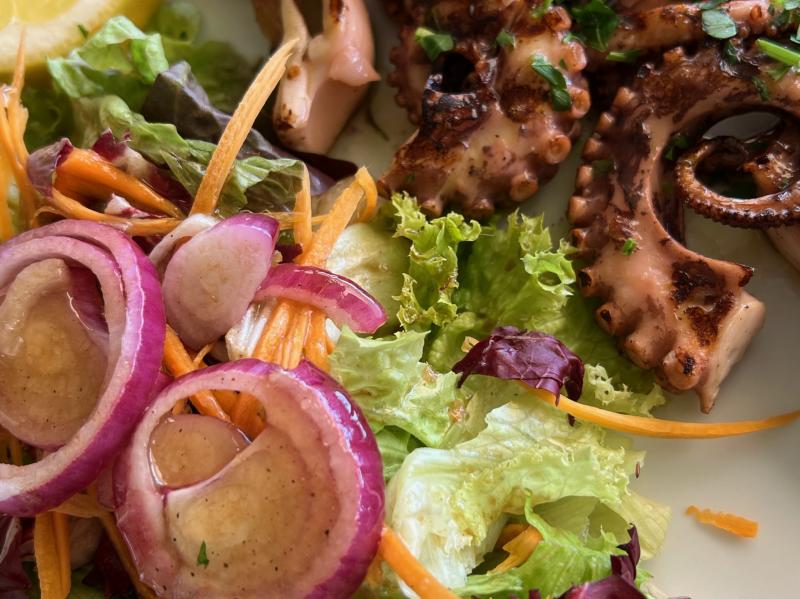 Heute gab es beim Italiener Pulpo vom Grill mit Salat und Kalbsleber mit Salbei. Wir haben uns die Gerichte geteilt. Erst Pulpo dann die Kalbsleber. Es war köstlich. :D Ich glaube Thomas hat etwas davon fotografiert.