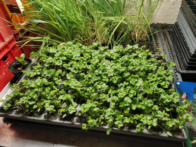 Gezielte Aussaat, auch mit selbst geernteten Samen, mache ich in Multitopfplatten. Das geht ganz gut, wenn sie warm genug stehen und regelmäßig feucht bleiben. Die Keimdauer ist recht lange bei Petersilie.