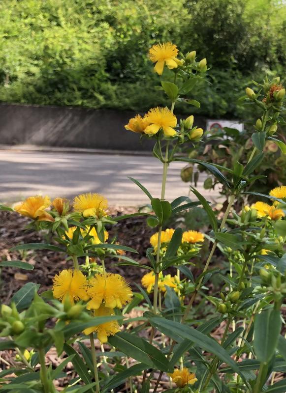 H. calycinum wächst im Vorgarten auf dem Pflaster.