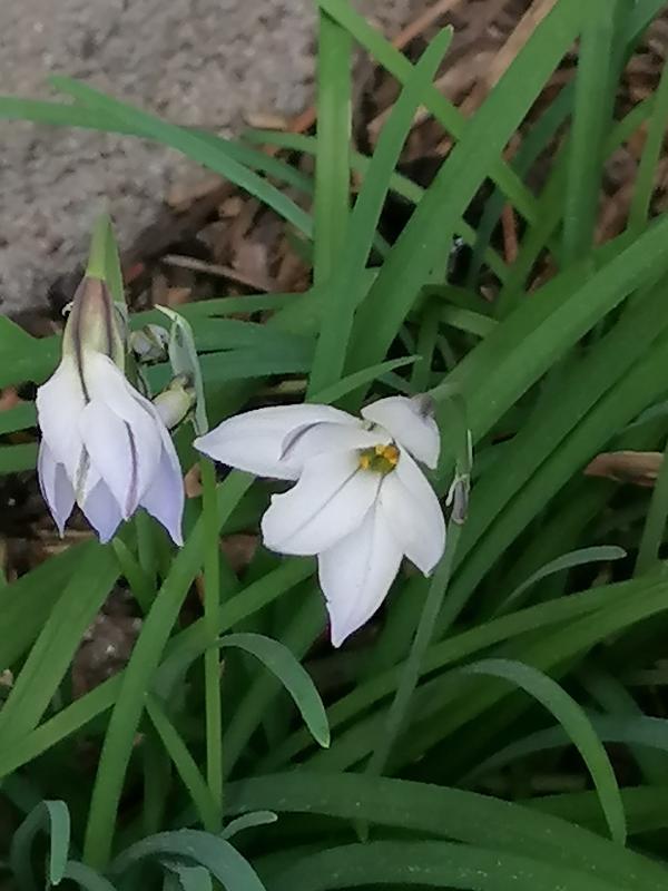 Die Ipheion in den Hosta-Töpfen wuchsen und blühten auch ohne Regenschutz im Winter.