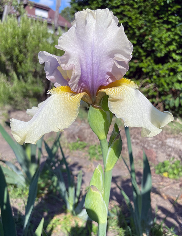 Ich hatte auch schon mehrfach Iris ausgesät, die ersten waren nix besonderes. Einen hübschen Sämling hatte ich aus dem GdS-Samentausch gezogen, ich hoffe er hat das Hochwasser vom letzten Jahr überlebt. Ein anderer Satz brachte auch ein paar Hübsche hervor. Am besten gefällt mir diese, einen Zwilling gibt es auch noch. Dieses Jahr hatte 'Alsterquelle' Samen angesetzt, die sind bereits ausgesät, da bin ich gespannt, was dabei rauskommt.