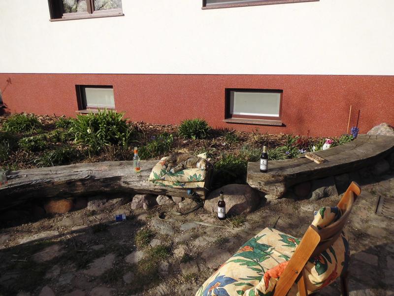 Der Nachbarkater Chuck ist da ein bißchen unempfindlicher. Weil bei den Nachbarn der Garten nur aus penibel gepflegtem Rasen besteht, kommt er häufig bei uns vorbei und harrt lange vor dem Bereich aus, in dem sich Mäuse verbergen. Und dann zurück zu den Nachbarn mit einer Maus, durch die Katzenklappe und .. hmm!