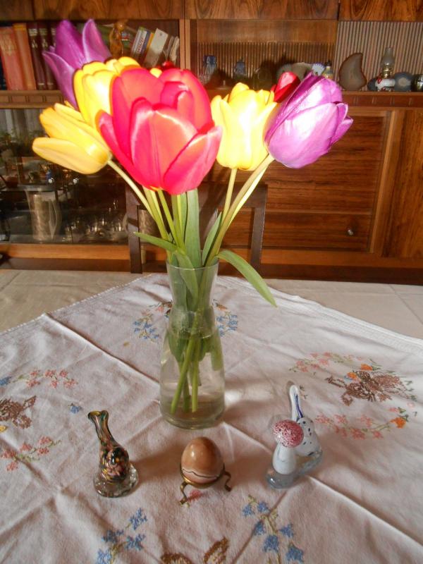 Die Tulpen aus dem Garten haben am besten in diese einfache Glasvase gepasst.