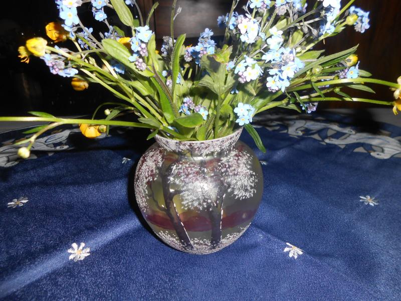 Dieses Väschen habe ich gerade spottbillig auf dem Flohmarkt erstanden und mit derzeit blühendem "Unkraut" gefüllt. Also gar nichts Besonderes.