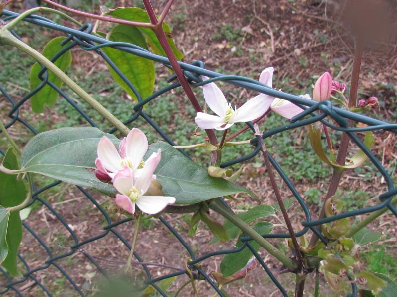 PS, am Zaun draußen blüht die winzige Clematis armandii `Appleblossom´, das Bild ist eigentlich schon ein paar Tage her. Der Zaun muss bald weg, angeblich wird dieses Jahr endlich gebuddelt, geräumt ist ansonsten schon. Ich hoffe die Nachfolgerin wird ein ähnliches Kaliber wie Deine Normale!