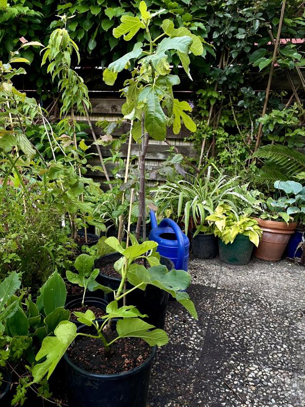 bei mir stehen jetzt auch zwei neue sorten (frisch größergetopft im bild), eine meiner bisherigen muss für die eine davon gehen. die ohne vorherige rücksprache für die eine feige vorgesehene nachbarin will nämlich durchaus gerne eine nehmen, aber möglichst eine absolut unkomplizierte sorte mit erntepotential, also werde ich ihr wohl am besten eine meiner beiden kübel-rdb überreichen, statt die eigentlich dafür gedachte, uns soweit noch unbekannte sorte. ich hoffe, das ist ok so für den edlen spender!